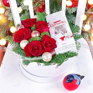 Хрустальный лед-коробка с кустовыми розами и раффаэлло