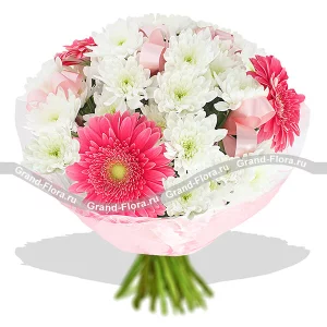 Свидание в Рио + шоколад - букет из хризантем,гербер и роз с шоколадом