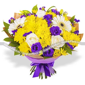 Солнечные блики - букет из разноцветных кустовых хризантем