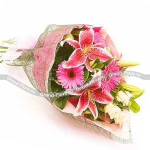 Спасибо за заботу - букет из розовых гербер и альстромерии