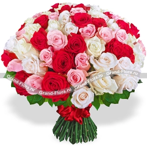 Аромат нежности – букет из белых и розовых роз (50-60 см)