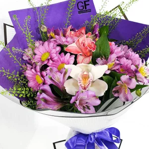 Цветочная элегантность - букет-новинка с орхидеей, розами и альстромериями