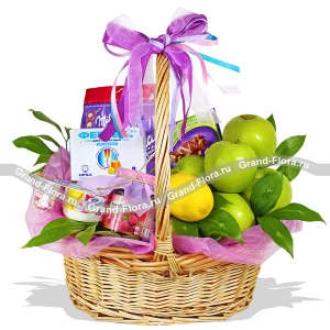 Презент от Айболита - подарочная корзина с фруктами и сладостями