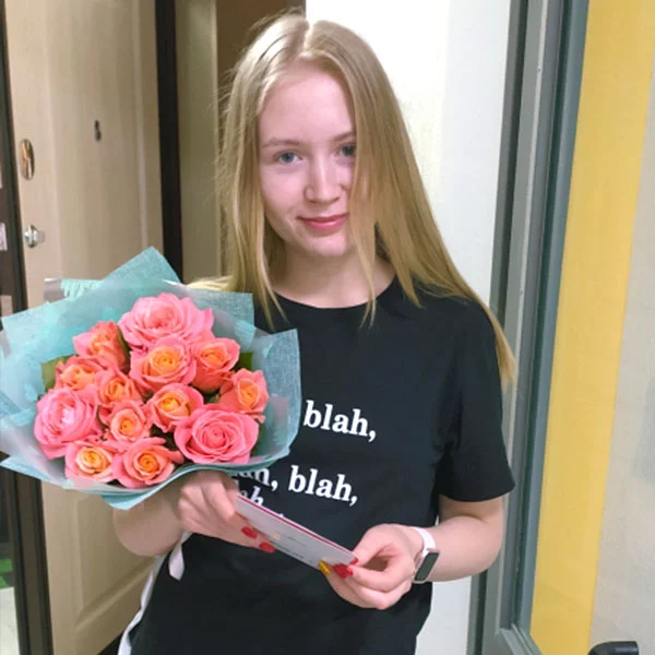 Наталья / г. Калининград / 09.04.2020Оценка букета:Спасибо всем большое.Дочь очень довольна, букет понравился. Мы тоже довольны, что за 10 000 км смогли с Вашей помощью поздравить доченьку с восемнадцатилетием! Особая благодарность, что смогли доставить цветы утром, как я просила. Успехов!
