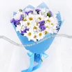 хризантема белая кустовая ромашковая - 7 ., статица - 3 шт., салал, фетр фиолетовый. Примерный размер: 25Х30 см. Данный букет представлен на фото