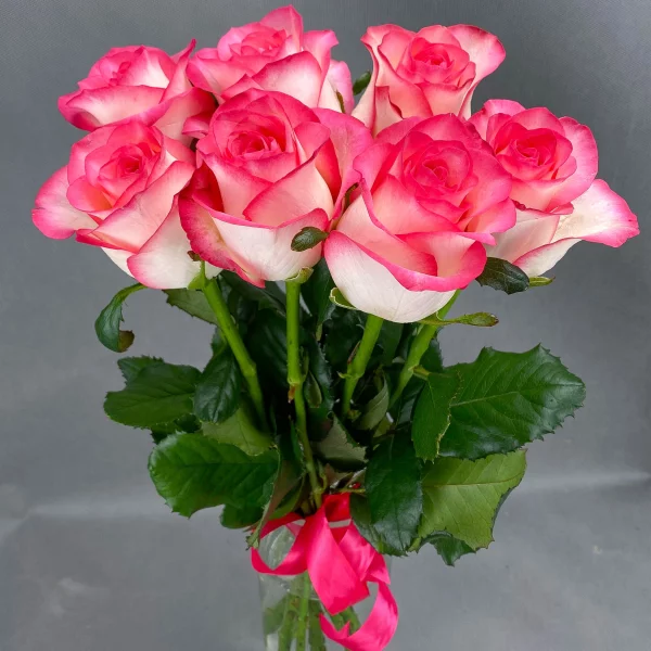 Роза розовая (количество, выбранное Вами) 50 см, лента.